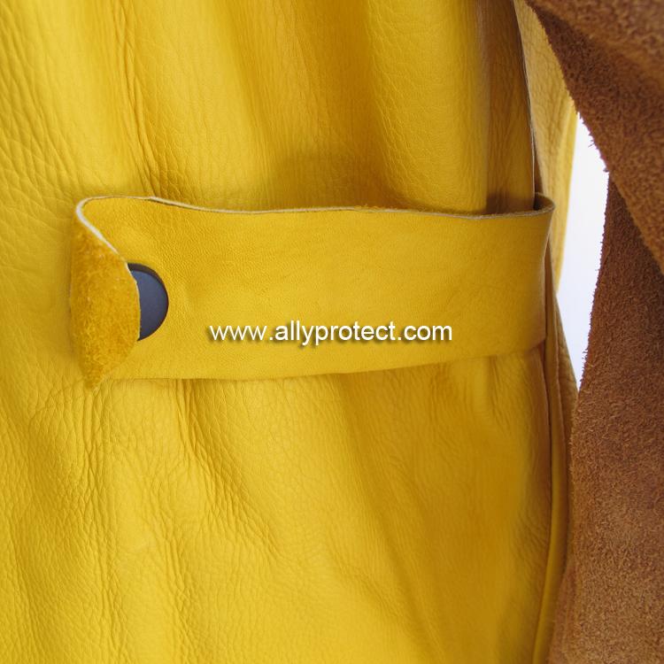 - 產品描述: [ AP ]金黃色牛青皮配金棕色皮袖上身焊服,輕便柔軟,能夠在焊接飛濺嚴重的環(huán)境中,給使用者的身體提供安全有效的保護。